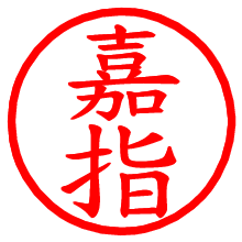 [朱肉の色]を選び、入力窓に“嘉指”と入力して[生成]ボタンを押すと、印影が更新され、リンクから電子印鑑(デジタル印影)がダウンロードできます。 電子印鑑「嘉指」の作り方文字表示が変なときや、文字バランスが悪いときは[字形切替]のチェックボックスでON/OFFを切り替え[生成]しなおしてください。 生成される画像は通常の印影「嘉指.png」と、にじみを表現した少し太めの印影「嘉指B.png」の背面透過PNG形式2種と、鮮明なPDF形式の印影「嘉指.pdf」の計3種類です。 朱肉の微妙な色の違いを7色で表現しました。デフォルト(左端)は、JISが定めた朱肉の色のマンセル値(7.5R 5/14)をRGB値(217,66,54)に変換したものになっています。 「電子透かし」にチェックを入れて[生成]ボタンを押すと、タイムスタンプを電子透かしとして埋め込んだセキュアな電子印鑑が作れます。詳細は別ページの「タイムスタンプと電子透かし」でご覧ください。 嘉指さんの日付印が作れます。「日付スタンプメーカー」は、社内向けの書類に利用されることの多い日付印(データ印)が無料で作れるWebアプリケーションです。中段に日付が入り、上段と下段は、ともに8文字まで文字が入ります。 ![]() 古代文字で落款印が作れます。「落款スタンプメーカー」で作品を引き立たせる落款印が作れます。
