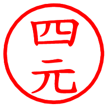 [朱肉の色]を選び、入力窓に“四元”と入力して[生成]ボタンを押すと、印影が更新され、リンクから電子印鑑(デジタル印影)がダウンロードできます。 電子印鑑「四元」の作り方文字表示が変なときや、文字バランスが悪いときは[字形切替]のチェックボックスでON/OFFを切り替え[生成]しなおしてください。 生成される画像は通常の印影「四元.png」と、にじみを表現した少し太めの印影「四元B.png」の背面透過PNG形式2種と、鮮明なPDF形式の印影「四元.pdf」の計3種類です。 朱肉の微妙な色の違いを7色で表現しました。デフォルト(左端)は、JISが定めた朱肉の色のマンセル値(7.5R 5/14)をRGB値(217,66,54)に変換したものになっています。 「電子透かし」にチェックを入れて[生成]ボタンを押すと、タイムスタンプを透かしとして埋め込んだセキュアな電子印鑑が作れます。詳細は別ページの「電子透かしとタイムスタンプ」でご覧ください。 四元さんの日付印が作れます。「日付スタンプメーカー」は、社内向けの書類に利用されることの多い日付印(データ印)が無料で作れるWebアプリケーションです。中段に日付が入り、上段と下段は、ともに8文字まで文字が入ります。 ![]() 古代文字で落款印が作れます。「落款スタンプメーカー」で作品を引き立たせる落款印が作れます。