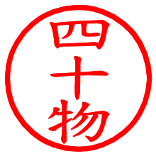 [朱肉の色]を選び、入力窓に“四十物”と入力して[生成]ボタンを押すと、印影が更新され、リンクから電子印鑑(デジタル印影)がダウンロードできます。 電子印鑑「四十物」の作り方文字表示が変なときや、文字バランスが悪いときは[字形切替]のチェックボックスでON/OFFを切り替え[生成]しなおしてください。 生成される画像は通常の印影「四十物.png」と、にじみを表現した少し太めの印影「四十物B.png」の背面透過PNG形式2種と、鮮明なPDF形式の印影「四十物.pdf」の計3種類です。 朱肉の微妙な色の違いを7色で表現しました。デフォルト(左端)は、JISが定めた朱肉の色のマンセル値(7.5R 5/14)をRGB値(217,66,54)に変換したものになっています。 「電子透かし」にチェックを入れて[生成]ボタンを押すと、タイムスタンプを電子透かしとして埋め込んだセキュアな電子印鑑が作れます。詳細は別ページの「タイムスタンプと電子透かし」でご覧ください。 四十物さんの日付印が作れます。「日付スタンプメーカー」は、社内向けの書類に利用されることの多い日付印(データ印)が無料で作れるWebアプリケーションです。中段に日付が入り、上段と下段は、ともに8文字まで文字が入ります。 ![]() 古代文字で落款印が作れます。「落款スタンプメーカー」で作品を引き立たせる落款印が作れます。