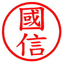 [朱肉の色]を選び、入力窓に“國信”と入力して[生成]ボタンを押すと、印影が更新され、リンクから電子印鑑(デジタル印影)がダウンロードできます。 電子印鑑「國信」の作り方文字表示が変なときや、文字バランスが悪いときは[字形切替]のチェックボックスでON/OFFを切り替え[生成]しなおしてください。 生成される画像は通常の印影「國信.png」と、にじみを表現した少し太めの印影「國信B.png」の背面透過PNG形式2種と、鮮明なPDF形式の印影「國信.pdf」の計3種類です。 朱肉の微妙な色の違いを7色で表現しました。デフォルト(左端)は、JISが定めた朱肉の色のマンセル値(7.5R 5/14)をRGB値(217,66,54)に変換したものになっています。 「電子透かし」にチェックを入れて[生成]ボタンを押すと、タイムスタンプを電子透かしとして埋め込んだセキュアな電子印鑑が作れます。詳細は別ページの「タイムスタンプと電子透かし」でご覧ください。 國信さんの日付印が作れます。「日付スタンプメーカー」は、社内向けの書類に利用されることの多い日付印(データ印)が無料で作れるWebアプリケーションです。中段に日付が入り、上段と下段は、ともに8文字まで文字が入ります。 ![]() 古代文字で落款印が作れます。「落款スタンプメーカー」で作品を引き立たせる落款印が作れます。