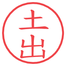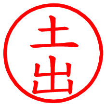 [朱肉の色]を選び、入力窓に“土出”と入力して[生成]ボタンを押すと、印影が更新され、リンクから電子印鑑(デジタル印影)がダウンロードできます。 電子印鑑「土出」の作り方文字表示が変なときや、文字バランスが悪いときは[字形切替]のチェックボックスでON/OFFを切り替え[生成]しなおしてください。 生成される画像は通常の印影「土出.png」と、にじみを表現した少し太めの印影「土出B.png」の背面透過PNG形式2種と、鮮明なPDF形式の印影「土出.pdf」の計3種類です。 朱肉の微妙な色の違いを7色で表現しました。デフォルト(左端)は、JISが定めた朱肉の色のマンセル値(7.5R 5/14)をRGB値(217,66,54)に変換したものになっています。 「電子透かし」にチェックを入れて[生成]ボタンを押すと、タイムスタンプを透かしとして埋め込んだセキュアな電子印鑑が作れます。詳細は別ページの「電子透かしとタイムスタンプ」でご覧ください。  土出さんの日付印が作れます。「日付スタンプメーカー」は、社内向けの書類に利用されることの多い日付印(データ印)が無料で作れるWebアプリケーションです。中段に日付が入り、上段と下段は、ともに8文字まで文字が入ります。 ![]()  古代文字で落款印が作れます。「落款スタンプメーカー」で作品を引き立たせる落款印が作れます。