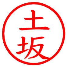 [朱肉の色]を選び、入力窓に“土坂”と入力して[生成]ボタンを押すと、印影が更新され、リンクから電子印鑑(デジタル印影)がダウンロードできます。 電子印鑑「土坂」の作り方文字表示が変なときや、文字バランスが悪いときは[字形切替]のチェックボックスでON/OFFを切り替え[生成]しなおしてください。 生成される画像は通常の印影「土坂.png」と、にじみを表現した少し太めの印影「土坂B.png」の背面透過PNG形式2種と、鮮明なPDF形式の印影「土坂.pdf」の計3種類です。 朱肉の微妙な色の違いを7色で表現しました。デフォルト(左端)は、JISが定めた朱肉の色のマンセル値(7.5R 5/14)をRGB値(217,66,54)に変換したものになっています。 「電子透かし」にチェックを入れて[生成]ボタンを押すと、タイムスタンプを電子透かしとして埋め込んだセキュアな電子印鑑が作れます。詳細は別ページの「タイムスタンプと電子透かし」でご覧ください。 土坂さんの日付印が作れます。「日付スタンプメーカー」は、社内向けの書類に利用されることの多い日付印(データ印)が無料で作れるWebアプリケーションです。中段に日付が入り、上段と下段は、ともに8文字まで文字が入ります。 ![]() 古代文字で落款印が作れます。「落款スタンプメーカー」で作品を引き立たせる落款印が作れます。
