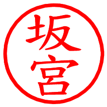 [朱肉の色]を選び、入力窓に“坂宮”と入力して[生成]ボタンを押すと、印影が更新され、リンクから電子印鑑(デジタル印影)がダウンロードできます。 電子印鑑「坂宮」の作り方文字表示が変なときや、文字バランスが悪いときは[字形切替]のチェックボックスでON/OFFを切り替え[生成]しなおしてください。 生成される画像は通常の印影「坂宮.png」と、にじみを表現した少し太めの印影「坂宮B.png」の背面透過PNG形式2種と、鮮明なPDF形式の印影「坂宮.pdf」の計3種類です。 朱肉の微妙な色の違いを7色で表現しました。デフォルト(左端)は、JISが定めた朱肉の色のマンセル値(7.5R 5/14)をRGB値(217,66,54)に変換したものになっています。 「電子透かし」にチェックを入れて[生成]ボタンを押すと、タイムスタンプを電子透かしとして埋め込んだセキュアな電子印鑑が作れます。詳細は別ページの「タイムスタンプと電子透かし」でご覧ください。 坂宮さんの日付印が作れます。「日付スタンプメーカー」は、社内向けの書類に利用されることの多い日付印(データ印)が無料で作れるWebアプリケーションです。中段に日付が入り、上段と下段は、ともに8文字まで文字が入ります。 ![]() 古代文字で落款印が作れます。「落款スタンプメーカー」で作品を引き立たせる落款印が作れます。