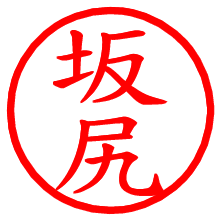 [朱肉の色]を選び、入力窓に“坂尻”と入力して[生成]ボタンを押すと、印影が更新され、リンクから電子印鑑(デジタル印影)がダウンロードできます。 電子印鑑「坂尻」の作り方文字表示が変なときや、文字バランスが悪いときは[字形切替]のチェックボックスでON/OFFを切り替え[生成]しなおしてください。 生成される画像は通常の印影「坂尻.png」と、にじみを表現した少し太めの印影「坂尻B.png」の背面透過PNG形式2種と、鮮明なPDF形式の印影「坂尻.pdf」の計3種類です。 朱肉の微妙な色の違いを7色で表現しました。デフォルト(左端)は、JISが定めた朱肉の色のマンセル値(7.5R 5/14)をRGB値(217,66,54)に変換したものになっています。 「電子透かし」にチェックを入れて[生成]ボタンを押すと、タイムスタンプを電子透かしとして埋め込んだセキュアな電子印鑑が作れます。詳細は別ページの「タイムスタンプと電子透かし」でご覧ください。 坂尻さんの日付印が作れます。「日付スタンプメーカー」は、社内向けの書類に利用されることの多い日付印(データ印)が無料で作れるWebアプリケーションです。中段に日付が入り、上段と下段は、ともに8文字まで文字が入ります。 ![]() 古代文字で落款印が作れます。「落款スタンプメーカー」で作品を引き立たせる落款印が作れます。