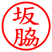 [朱肉の色]を選び、入力窓に“坂脇”と入力して[生成]ボタンを押すと、印影が更新され、リンクから電子印鑑(デジタル印影)がダウンロードできます。 電子印鑑「坂脇」の作り方文字表示が変なときや、文字バランスが悪いときは[字形切替]のチェックボックスでON/OFFを切り替え[生成]しなおしてください。 生成される画像は通常の印影「坂脇.png」と、にじみを表現した少し太めの印影「坂脇B.png」の背面透過PNG形式2種と、鮮明なPDF形式の印影「坂脇.pdf」の計3種類です。 朱肉の微妙な色の違いを7色で表現しました。デフォルト(左端)は、JISが定めた朱肉の色のマンセル値(7.5R 5/14)をRGB値(217,66,54)に変換したものになっています。 「電子透かし」にチェックを入れて[生成]ボタンを押すと、タイムスタンプを電子透かしとして埋め込んだセキュアな電子印鑑が作れます。詳細は別ページの「タイムスタンプと電子透かし」でご覧ください。 坂脇さんの日付印が作れます。「日付スタンプメーカー」は、社内向けの書類に利用されることの多い日付印(データ印)が無料で作れるWebアプリケーションです。中段に日付が入り、上段と下段は、ともに8文字まで文字が入ります。 ![]() 古代文字で落款印が作れます。「落款スタンプメーカー」で作品を引き立たせる落款印が作れます。