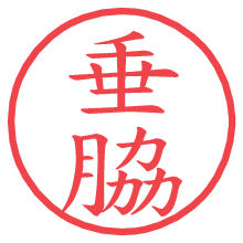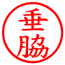 [朱肉の色]を選び、入力窓に“垂脇”と入力して[生成]ボタンを押すと、印影が更新され、リンクから電子印鑑(デジタル印影)がダウンロードできます。 電子印鑑「垂脇」の作り方文字表示が変なときや、文字バランスが悪いときは[字形切替]のチェックボックスでON/OFFを切り替え[生成]しなおしてください。 生成される画像は通常の印影「垂脇.png」と、にじみを表現した少し太めの印影「垂脇B.png」の背面透過PNG形式2種と、鮮明なPDF形式の印影「垂脇.pdf」の計3種類です。 朱肉の微妙な色の違いを7色で表現しました。デフォルト(左端)は、JISが定めた朱肉の色のマンセル値(7.5R 5/14)をRGB値(217,66,54)に変換したものになっています。 「電子透かし」にチェックを入れて[生成]ボタンを押すと、タイムスタンプを電子透かしとして埋め込んだセキュアな電子印鑑が作れます。詳細は別ページの「タイムスタンプと電子透かし」でご覧ください。 垂脇さんの日付印が作れます。「日付スタンプメーカー」は、社内向けの書類に利用されることの多い日付印(データ印)が無料で作れるWebアプリケーションです。中段に日付が入り、上段と下段は、ともに8文字まで文字が入ります。 ![]() 古代文字で落款印が作れます。「落款スタンプメーカー」で作品を引き立たせる落款印が作れます。