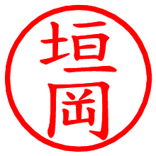 [朱肉の色]を選び、入力窓に“垣岡”と入力して[生成]ボタンを押すと、印影が更新され、リンクから電子印鑑(デジタル印影)がダウンロードできます。 電子印鑑「垣岡」の作り方文字表示が変なときや、文字バランスが悪いときは[字形切替]のチェックボックスでON/OFFを切り替え[生成]しなおしてください。 生成される画像は通常の印影「垣岡.png」と、にじみを表現した少し太めの印影「垣岡B.png」の背面透過PNG形式2種と、鮮明なPDF形式の印影「垣岡.pdf」の計3種類です。 朱肉の微妙な色の違いを7色で表現しました。デフォルト(左端)は、JISが定めた朱肉の色のマンセル値(7.5R 5/14)をRGB値(217,66,54)に変換したものになっています。 「電子透かし」にチェックを入れて[生成]ボタンを押すと、タイムスタンプを透かしとして埋め込んだセキュアな電子印鑑が作れます。詳細は別ページの「電子透かしとタイムスタンプ」でご覧ください。 垣岡さんの日付印が作れます。「日付スタンプメーカー」は、社内向けの書類に利用されることの多い日付印(データ印)が無料で作れるWebアプリケーションです。中段に日付が入り、上段と下段は、ともに8文字まで文字が入ります。 ![]() 古代文字で落款印が作れます。「落款スタンプメーカー」で作品を引き立たせる落款印が作れます。
