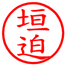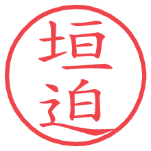 [朱肉の色]を選び、入力窓に“垣迫”と入力して[生成]ボタンを押すと、印影が更新され、リンクから電子印鑑(デジタル印影)がダウンロードできます。 電子印鑑「垣迫」の作り方文字表示が変なときや、文字バランスが悪いときは[字形切替]のチェックボックスでON/OFFを切り替え[生成]しなおしてください。 生成される画像は通常の印影「垣迫.png」と、にじみを表現した少し太めの印影「垣迫B.png」の背面透過PNG形式2種と、鮮明なPDF形式の印影「垣迫.pdf」の計3種類です。 朱肉の微妙な色の違いを7色で表現しました。デフォルト(左端)は、JISが定めた朱肉の色のマンセル値(7.5R 5/14)をRGB値(217,66,54)に変換したものになっています。 「電子透かし」にチェックを入れて[生成]ボタンを押すと、タイムスタンプを電子透かしとして埋め込んだセキュアな電子印鑑が作れます。詳細は別ページの「タイムスタンプと電子透かし」でご覧ください。 垣迫さんの日付印が作れます。「日付スタンプメーカー」は、社内向けの書類に利用されることの多い日付印(データ印)が無料で作れるWebアプリケーションです。中段に日付が入り、上段と下段は、ともに8文字まで文字が入ります。 ![]() 古代文字で落款印が作れます。「落款スタンプメーカー」で作品を引き立たせる落款印が作れます。