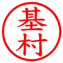 [朱肉の色]を選び、入力窓に“基村”と入力して[生成]ボタンを押すと、印影が更新され、リンクから電子印鑑(デジタル印影)がダウンロードできます。 電子印鑑「基村」の作り方文字表示が変なときや、文字バランスが悪いときは[字形切替]のチェックボックスでON/OFFを切り替え[生成]しなおしてください。 生成される画像は通常の印影「基村.png」と、にじみを表現した少し太めの印影「基村B.png」の背面透過PNG形式2種と、鮮明なPDF形式の印影「基村.pdf」の計3種類です。 朱肉の微妙な色の違いを7色で表現しました。デフォルト(左端)は、JISが定めた朱肉の色のマンセル値(7.5R 5/14)をRGB値(217,66,54)に変換したものになっています。 「電子透かし」にチェックを入れて[生成]ボタンを押すと、タイムスタンプを電子透かしとして埋め込んだセキュアな電子印鑑が作れます。詳細は別ページの「タイムスタンプと電子透かし」でご覧ください。 基村さんの日付印が作れます。「日付スタンプメーカー」は、社内向けの書類に利用されることの多い日付印(データ印)が無料で作れるWebアプリケーションです。中段に日付が入り、上段と下段は、ともに8文字まで文字が入ります。 ![]() 古代文字で落款印が作れます。「落款スタンプメーカー」で作品を引き立たせる落款印が作れます。