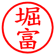 [朱肉の色]を選び、入力窓に“堀富”と入力して[生成]ボタンを押すと、印影が更新され、リンクから電子印鑑(デジタル印影)がダウンロードできます。 電子印鑑「堀富」の作り方文字表示が変なときや、文字バランスが悪いときは[字形切替]のチェックボックスでON/OFFを切り替え[生成]しなおしてください。 生成される画像は通常の印影「堀富.png」と、にじみを表現した少し太めの印影「堀富B.png」の背面透過PNG形式2種と、鮮明なPDF形式の印影「堀富.pdf」の計3種類です。 朱肉の微妙な色の違いを7色で表現しました。デフォルト(左端)は、JISが定めた朱肉の色のマンセル値(7.5R 5/14)をRGB値(217,66,54)に変換したものになっています。 「電子透かし」にチェックを入れて[生成]ボタンを押すと、タイムスタンプを電子透かしとして埋め込んだセキュアな電子印鑑が作れます。詳細は別ページの「タイムスタンプと電子透かし」でご覧ください。 堀富さんの日付印が作れます。「日付スタンプメーカー」は、社内向けの書類に利用されることの多い日付印(データ印)が無料で作れるWebアプリケーションです。中段に日付が入り、上段と下段は、ともに8文字まで文字が入ります。 ![]() 古代文字で落款印が作れます。「落款スタンプメーカー」で作品を引き立たせる落款印が作れます。