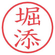 [朱肉の色]を選び、入力窓に“堀添”と入力して[生成]ボタンを押すと、印影が更新され、リンクから電子印鑑(デジタル印影)がダウンロードできます。 電子印鑑「堀添」の作り方文字表示が変なときや、文字バランスが悪いときは[字形切替]のチェックボックスでON/OFFを切り替え[生成]しなおしてください。 生成される画像は通常の印影「堀添.png」と、にじみを表現した少し太めの印影「堀添B.png」の背面透過PNG形式2種と、鮮明なPDF形式の印影「堀添.pdf」の計3種類です。 朱肉の微妙な色の違いを7色で表現しました。デフォルト(左端)は、JISが定めた朱肉の色のマンセル値(7.5R 5/14)をRGB値(217,66,54)に変換したものになっています。 「電子透かし」にチェックを入れて[生成]ボタンを押すと、タイムスタンプを電子透かしとして埋め込んだセキュアな電子印鑑が作れます。詳細は別ページの「タイムスタンプと電子透かし」でご覧ください。 堀添さんの日付印が作れます。「日付スタンプメーカー」は、社内向けの書類に利用されることの多い日付印(データ印)が無料で作れるWebアプリケーションです。中段に日付が入り、上段と下段は、ともに8文字まで文字が入ります。 ![]() 古代文字で落款印が作れます。「落款スタンプメーカー」で作品を引き立たせる落款印が作れます。
