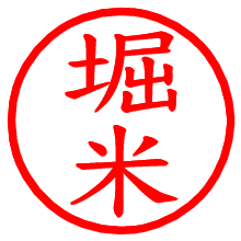 [朱肉の色]を選び、入力窓に“堀米”と入力して[生成]ボタンを押すと、印影が更新され、リンクから電子印鑑(デジタル印影)がダウンロードできます。 電子印鑑「堀米」の作り方文字表示が変なときや、文字バランスが悪いときは[字形切替]のチェックボックスでON/OFFを切り替え[生成]しなおしてください。 生成される画像は通常の印影「堀米.png」と、にじみを表現した少し太めの印影「堀米B.png」の背面透過PNG形式2種と、鮮明なPDF形式の印影「堀米.pdf」の計3種類です。 朱肉の微妙な色の違いを7色で表現しました。デフォルト(左端)は、JISが定めた朱肉の色のマンセル値(7.5R 5/14)をRGB値(217,66,54)に変換したものになっています。 「電子透かし」にチェックを入れて[生成]ボタンを押すと、タイムスタンプを透かしとして埋め込んだセキュアな電子印鑑が作れます。詳細は別ページの「電子透かしとタイムスタンプ」でご覧ください。 堀米さんの日付印が作れます。「日付スタンプメーカー」は、社内向けの書類に利用されることの多い日付印(データ印)が無料で作れるWebアプリケーションです。中段に日付が入り、上段と下段は、ともに8文字まで文字が入ります。 ![]() 古代文字で落款印が作れます。「落款スタンプメーカー」で作品を引き立たせる落款印が作れます。