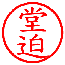 [朱肉の色]を選び、入力窓に“堂迫”と入力して[生成]ボタンを押すと、印影が更新され、リンクから電子印鑑(デジタル印影)がダウンロードできます。 電子印鑑「堂迫」の作り方文字表示が変なときや、文字バランスが悪いときは[字形切替]のチェックボックスでON/OFFを切り替え[生成]しなおしてください。 生成される画像は通常の印影「堂迫.png」と、にじみを表現した少し太めの印影「堂迫B.png」の背面透過PNG形式2種と、鮮明なPDF形式の印影「堂迫.pdf」の計3種類です。 朱肉の微妙な色の違いを7色で表現しました。デフォルト(左端)は、JISが定めた朱肉の色のマンセル値(7.5R 5/14)をRGB値(217,66,54)に変換したものになっています。 「電子透かし」にチェックを入れて[生成]ボタンを押すと、タイムスタンプを透かしとして埋め込んだセキュアな電子印鑑が作れます。詳細は別ページの「電子透かしとタイムスタンプ」でご覧ください。 堂迫さんの日付印が作れます。「日付スタンプメーカー」は、社内向けの書類に利用されることの多い日付印(データ印)が無料で作れるWebアプリケーションです。中段に日付が入り、上段と下段は、ともに8文字まで文字が入ります。 ![]() 古代文字で落款印が作れます。「落款スタンプメーカー」で作品を引き立たせる落款印が作れます。