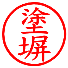 [朱肉の色]を選び、入力窓に“塗塀”と入力して[生成]ボタンを押すと、印影が更新され、リンクから電子印鑑(デジタル印影)がダウンロードできます。 電子印鑑「塗塀」の作り方文字表示が変なときや、文字バランスが悪いときは[字形切替]のチェックボックスでON/OFFを切り替え[生成]しなおしてください。 生成される画像は通常の印影「塗塀.png」と、にじみを表現した少し太めの印影「塗塀B.png」の背面透過PNG形式2種と、鮮明なPDF形式の印影「塗塀.pdf」の計3種類です。 朱肉の微妙な色の違いを7色で表現しました。デフォルト(左端)は、JISが定めた朱肉の色のマンセル値(7.5R 5/14)をRGB値(217,66,54)に変換したものになっています。 「電子透かし」にチェックを入れて[生成]ボタンを押すと、タイムスタンプを電子透かしとして埋め込んだセキュアな電子印鑑が作れます。詳細は別ページの「タイムスタンプと電子透かし」でご覧ください。 塗塀さんの日付印が作れます。「日付スタンプメーカー」は、社内向けの書類に利用されることの多い日付印(データ印)が無料で作れるWebアプリケーションです。中段に日付が入り、上段と下段は、ともに8文字まで文字が入ります。 ![]() 古代文字で落款印が作れます。「落款スタンプメーカー」で作品を引き立たせる落款印が作れます。