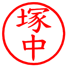 [朱肉の色]を選び、入力窓に“塚中”と入力して[生成]ボタンを押すと、印影が更新され、リンクから電子印鑑(デジタル印影)がダウンロードできます。 電子印鑑「塚中」の作り方文字表示が変なときや、文字バランスが悪いときは[字形切替]のチェックボックスでON/OFFを切り替え[生成]しなおしてください。 生成される画像は通常の印影「塚中.png」と、にじみを表現した少し太めの印影「塚中B.png」の背面透過PNG形式2種と、鮮明なPDF形式の印影「塚中.pdf」の計3種類です。 朱肉の微妙な色の違いを7色で表現しました。デフォルト(左端)は、JISが定めた朱肉の色のマンセル値(7.5R 5/14)をRGB値(217,66,54)に変換したものになっています。 「電子透かし」にチェックを入れて[生成]ボタンを押すと、タイムスタンプを電子透かしとして埋め込んだセキュアな電子印鑑が作れます。詳細は別ページの「タイムスタンプと電子透かし」でご覧ください。 塚中さんの日付印が作れます。「日付スタンプメーカー」は、社内向けの書類に利用されることの多い日付印(データ印)が無料で作れるWebアプリケーションです。中段に日付が入り、上段と下段は、ともに8文字まで文字が入ります。 ![]() 古代文字で落款印が作れます。「落款スタンプメーカー」で作品を引き立たせる落款印が作れます。