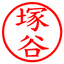 [朱肉の色]を選び、入力窓に“塚谷”と入力して[生成]ボタンを押すと、印影が更新され、リンクから電子印鑑(デジタル印影)がダウンロードできます。 電子印鑑「塚谷」の作り方文字表示が変なときや、文字バランスが悪いときは[字形切替]のチェックボックスでON/OFFを切り替え[生成]しなおしてください。 生成される画像は通常の印影「塚谷.png」と、にじみを表現した少し太めの印影「塚谷B.png」の背面透過PNG形式2種と、鮮明なPDF形式の印影「塚谷.pdf」の計3種類です。 朱肉の微妙な色の違いを7色で表現しました。デフォルト(左端)は、JISが定めた朱肉の色のマンセル値(7.5R 5/14)をRGB値(217,66,54)に変換したものになっています。 「電子透かし」にチェックを入れて[生成]ボタンを押すと、タイムスタンプを電子透かしとして埋め込んだセキュアな電子印鑑が作れます。詳細は別ページの「タイムスタンプと電子透かし」でご覧ください。 塚谷さんの日付印が作れます。「日付スタンプメーカー」は、社内向けの書類に利用されることの多い日付印(データ印)が無料で作れるWebアプリケーションです。中段に日付が入り、上段と下段は、ともに8文字まで文字が入ります。 ![]() 古代文字で落款印が作れます。「落款スタンプメーカー」で作品を引き立たせる落款印が作れます。