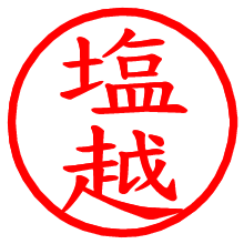[朱肉の色]を選び、入力窓に“塩越”と入力して[生成]ボタンを押すと、印影が更新され、リンクから電子印鑑(デジタル印影)がダウンロードできます。 電子印鑑「塩越」の作り方文字表示が変なときや、文字バランスが悪いときは[字形切替]のチェックボックスでON/OFFを切り替え[生成]しなおしてください。 生成される画像は通常の印影「塩越.png」と、にじみを表現した少し太めの印影「塩越B.png」の背面透過PNG形式2種と、鮮明なPDF形式の印影「塩越.pdf」の計3種類です。 朱肉の微妙な色の違いを7色で表現しました。デフォルト(左端)は、JISが定めた朱肉の色のマンセル値(7.5R 5/14)をRGB値(217,66,54)に変換したものになっています。 「電子透かし」にチェックを入れて[生成]ボタンを押すと、タイムスタンプを電子透かしとして埋め込んだセキュアな電子印鑑が作れます。詳細は別ページの「タイムスタンプと電子透かし」でご覧ください。 塩越さんの日付印が作れます。「日付スタンプメーカー」は、社内向けの書類に利用されることの多い日付印(データ印)が無料で作れるWebアプリケーションです。中段に日付が入り、上段と下段は、ともに8文字まで文字が入ります。 ![]() 古代文字で落款印が作れます。「落款スタンプメーカー」で作品を引き立たせる落款印が作れます。