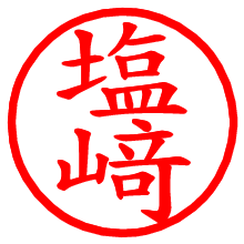 [朱肉の色]を選び、入力窓に“塩﨑”と入力して[生成]ボタンを押すと、印影が更新され、リンクから電子印鑑(デジタル印影)がダウンロードできます。 電子印鑑「塩﨑」の作り方文字表示が変なときや、文字バランスが悪いときは[字形切替]のチェックボックスでON/OFFを切り替え[生成]しなおしてください。 生成される画像は通常の印影「塩﨑.png」と、にじみを表現した少し太めの印影「塩﨑B.png」の背面透過PNG形式2種と、鮮明なPDF形式の印影「塩﨑.pdf」の計3種類です。 朱肉の微妙な色の違いを7色で表現しました。デフォルト(左端)は、JISが定めた朱肉の色のマンセル値(7.5R 5/14)をRGB値(217,66,54)に変換したものになっています。 「電子透かし」にチェックを入れて[生成]ボタンを押すと、タイムスタンプを電子透かしとして埋め込んだセキュアな電子印鑑が作れます。詳細は別ページの「タイムスタンプと電子透かし」でご覧ください。 塩﨑さんの日付印が作れます。「日付スタンプメーカー」は、社内向けの書類に利用されることの多い日付印(データ印)が無料で作れるWebアプリケーションです。中段に日付が入り、上段と下段は、ともに8文字まで文字が入ります。 ![]() 古代文字で落款印が作れます。「落款スタンプメーカー」で作品を引き立たせる落款印が作れます。
