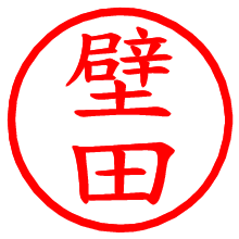 [朱肉の色]を選び、入力窓に“壁田”と入力して[生成]ボタンを押すと、印影が更新され、リンクから電子印鑑(デジタル印影)がダウンロードできます。 電子印鑑「壁田」の作り方文字表示が変なときや、文字バランスが悪いときは[字形切替]のチェックボックスでON/OFFを切り替え[生成]しなおしてください。 生成される画像は通常の印影「壁田.png」と、にじみを表現した少し太めの印影「壁田B.png」の背面透過PNG形式2種と、鮮明なPDF形式の印影「壁田.pdf」の計3種類です。 朱肉の微妙な色の違いを7色で表現しました。デフォルト(左端)は、JISが定めた朱肉の色のマンセル値(7.5R 5/14)をRGB値(217,66,54)に変換したものになっています。 「電子透かし」にチェックを入れて[生成]ボタンを押すと、タイムスタンプを電子透かしとして埋め込んだセキュアな電子印鑑が作れます。詳細は別ページの「タイムスタンプと電子透かし」でご覧ください。 壁田さんの日付印が作れます。「日付スタンプメーカー」は、社内向けの書類に利用されることの多い日付印(データ印)が無料で作れるWebアプリケーションです。中段に日付が入り、上段と下段は、ともに8文字まで文字が入ります。 ![]() 古代文字で落款印が作れます。「落款スタンプメーカー」で作品を引き立たせる落款印が作れます。
