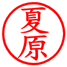 [朱肉の色]を選び、入力窓に“夏原”と入力して[生成]ボタンを押すと、印影が更新され、リンクから電子印鑑(デジタル印影)がダウンロードできます。 電子印鑑「夏原」の作り方文字表示が変なときや、文字バランスが悪いときは[字形切替]のチェックボックスでON/OFFを切り替え[生成]しなおしてください。 生成される画像は通常の印影「夏原.png」と、にじみを表現した少し太めの印影「夏原B.png」の背面透過PNG形式2種と、鮮明なPDF形式の印影「夏原.pdf」の計3種類です。 朱肉の微妙な色の違いを7色で表現しました。デフォルト(左端)は、JISが定めた朱肉の色のマンセル値(7.5R 5/14)をRGB値(217,66,54)に変換したものになっています。 「電子透かし」にチェックを入れて[生成]ボタンを押すと、タイムスタンプを電子透かしとして埋め込んだセキュアな電子印鑑が作れます。詳細は別ページの「タイムスタンプと電子透かし」でご覧ください。 夏原さんの日付印が作れます。「日付スタンプメーカー」は、社内向けの書類に利用されることの多い日付印(データ印)が無料で作れるWebアプリケーションです。中段に日付が入り、上段と下段は、ともに8文字まで文字が入ります。 ![]() 古代文字で落款印が作れます。「落款スタンプメーカー」で作品を引き立たせる落款印が作れます。