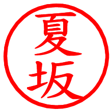 [朱肉の色]を選び、入力窓に“夏坂”と入力して[生成]ボタンを押すと、印影が更新され、リンクから電子印鑑(デジタル印影)がダウンロードできます。 電子印鑑「夏坂」の作り方文字表示が変なときや、文字バランスが悪いときは[字形切替]のチェックボックスでON/OFFを切り替え[生成]しなおしてください。 生成される画像は通常の印影「夏坂.png」と、にじみを表現した少し太めの印影「夏坂B.png」の背面透過PNG形式2種と、鮮明なPDF形式の印影「夏坂.pdf」の計3種類です。 朱肉の微妙な色の違いを7色で表現しました。デフォルト(左端)は、JISが定めた朱肉の色のマンセル値(7.5R 5/14)をRGB値(217,66,54)に変換したものになっています。 「電子透かし」にチェックを入れて[生成]ボタンを押すと、タイムスタンプを電子透かしとして埋め込んだセキュアな電子印鑑が作れます。詳細は別ページの「タイムスタンプと電子透かし」でご覧ください。 夏坂さんの日付印が作れます。「日付スタンプメーカー」は、社内向けの書類に利用されることの多い日付印(データ印)が無料で作れるWebアプリケーションです。中段に日付が入り、上段と下段は、ともに8文字まで文字が入ります。 ![]() 古代文字で落款印が作れます。「落款スタンプメーカー」で作品を引き立たせる落款印が作れます。