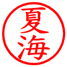 [朱肉の色]を選び、入力窓に“夏海”と入力して[生成]ボタンを押すと、印影が更新され、リンクから電子印鑑(デジタル印影)がダウンロードできます。 電子印鑑「夏海」の作り方文字表示が変なときや、文字バランスが悪いときは[字形切替]のチェックボックスでON/OFFを切り替え[生成]しなおしてください。 生成される画像は通常の印影「夏海.png」と、にじみを表現した少し太めの印影「夏海B.png」の背面透過PNG形式2種と、鮮明なPDF形式の印影「夏海.pdf」の計3種類です。 朱肉の微妙な色の違いを7色で表現しました。デフォルト(左端)は、JISが定めた朱肉の色のマンセル値(7.5R 5/14)をRGB値(217,66,54)に変換したものになっています。 「電子透かし」にチェックを入れて[生成]ボタンを押すと、タイムスタンプを電子透かしとして埋め込んだセキュアな電子印鑑が作れます。詳細は別ページの「タイムスタンプと電子透かし」でご覧ください。 夏海さんの日付印が作れます。「日付スタンプメーカー」は、社内向けの書類に利用されることの多い日付印(データ印)が無料で作れるWebアプリケーションです。中段に日付が入り、上段と下段は、ともに8文字まで文字が入ります。 ![]() 古代文字で落款印が作れます。「落款スタンプメーカー」で作品を引き立たせる落款印が作れます。