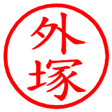 [朱肉の色]を選び、入力窓に“外塚”と入力して[生成]ボタンを押すと、印影が更新され、リンクから電子印鑑(デジタル印影)がダウンロードできます。 電子印鑑「外塚」の作り方文字表示が変なときや、文字バランスが悪いときは[字形切替]のチェックボックスでON/OFFを切り替え[生成]しなおしてください。 生成される画像は通常の印影「外塚.png」と、にじみを表現した少し太めの印影「外塚B.png」の背面透過PNG形式2種と、鮮明なPDF形式の印影「外塚.pdf」の計3種類です。 朱肉の微妙な色の違いを7色で表現しました。デフォルト(左端)は、JISが定めた朱肉の色のマンセル値(7.5R 5/14)をRGB値(217,66,54)に変換したものになっています。 「電子透かし」にチェックを入れて[生成]ボタンを押すと、タイムスタンプを電子透かしとして埋め込んだセキュアな電子印鑑が作れます。詳細は別ページの「タイムスタンプと電子透かし」でご覧ください。 外塚さんの日付印が作れます。「日付スタンプメーカー」は、社内向けの書類に利用されることの多い日付印(データ印)が無料で作れるWebアプリケーションです。中段に日付が入り、上段と下段は、ともに8文字まで文字が入ります。 ![]() 古代文字で落款印が作れます。「落款スタンプメーカー」で作品を引き立たせる落款印が作れます。