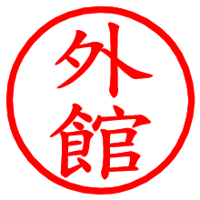 [朱肉の色]を選び、入力窓に“外館”と入力して[生成]ボタンを押すと、印影が更新され、リンクから電子印鑑(デジタル印影)がダウンロードできます。 電子印鑑「外館」の作り方文字表示が変なときや、文字バランスが悪いときは[字形切替]のチェックボックスでON/OFFを切り替え[生成]しなおしてください。 生成される画像は通常の印影「外館.png」と、にじみを表現した少し太めの印影「外館B.png」の背面透過PNG形式2種と、鮮明なPDF形式の印影「外館.pdf」の計3種類です。 朱肉の微妙な色の違いを7色で表現しました。デフォルト(左端)は、JISが定めた朱肉の色のマンセル値(7.5R 5/14)をRGB値(217,66,54)に変換したものになっています。 「電子透かし」にチェックを入れて[生成]ボタンを押すと、タイムスタンプを電子透かしとして埋め込んだセキュアな電子印鑑が作れます。詳細は別ページの「タイムスタンプと電子透かし」でご覧ください。 外館さんの日付印が作れます。「日付スタンプメーカー」は、社内向けの書類に利用されることの多い日付印(データ印)が無料で作れるWebアプリケーションです。中段に日付が入り、上段と下段は、ともに8文字まで文字が入ります。 ![]() 古代文字で落款印が作れます。「落款スタンプメーカー」で作品を引き立たせる落款印が作れます。
