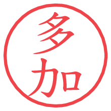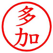 [朱肉の色]を選び、入力窓に“多加”と入力して[生成]ボタンを押すと、印影が更新され、リンクから電子印鑑(デジタル印影)がダウンロードできます。 電子印鑑「多加」の作り方文字表示が変なときや、文字バランスが悪いときは[字形切替]のチェックボックスでON/OFFを切り替え[生成]しなおしてください。 生成される画像は通常の印影「多加.png」と、にじみを表現した少し太めの印影「多加B.png」の背面透過PNG形式2種と、鮮明なPDF形式の印影「多加.pdf」の計3種類です。 朱肉の微妙な色の違いを7色で表現しました。デフォルト(左端)は、JISが定めた朱肉の色のマンセル値(7.5R 5/14)をRGB値(217,66,54)に変換したものになっています。 「電子透かし」にチェックを入れて[生成]ボタンを押すと、タイムスタンプを透かしとして埋め込んだセキュアな電子印鑑が作れます。詳細は別ページの「電子透かしとタイムスタンプ」でご覧ください。 ![]() 中段に日付が入り、上段と下段は、ともに8文字まで文字が入ります。 ![]() ![]() ![]() 「落款スタンプメーカー」で作成した落款印の全体的な配置バランスの確認にご利用いただけます。デザインのワンポイントやラインスタンプ等にもお使いください。 ![]() 絵文字が使えてLINEスタンプや年賀状にも使える消しゴムはんこ風の電子印鑑が作れます。 ![]() マイスタンプメーカーとは法的な電子印鑑にはあたりませんので三文判的な位置付けでご利用ください。 |