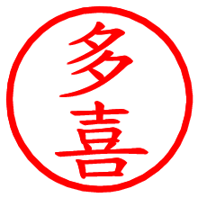 [朱肉の色]を選び、入力窓に“多喜”と入力して[生成]ボタンを押すと、印影が更新され、リンクから電子印鑑(デジタル印影)がダウンロードできます。 電子印鑑「多喜」の作り方文字表示が変なときや、文字バランスが悪いときは[字形切替]のチェックボックスでON/OFFを切り替え[生成]しなおしてください。 生成される画像は通常の印影「多喜.png」と、にじみを表現した少し太めの印影「多喜B.png」の背面透過PNG形式2種と、鮮明なPDF形式の印影「多喜.pdf」の計3種類です。 朱肉の微妙な色の違いを7色で表現しました。デフォルト(左端)は、JISが定めた朱肉の色のマンセル値(7.5R 5/14)をRGB値(217,66,54)に変換したものになっています。 「電子透かし」にチェックを入れて[生成]ボタンを押すと、タイムスタンプを電子透かしとして埋め込んだセキュアな電子印鑑が作れます。詳細は別ページの「タイムスタンプと電子透かし」でご覧ください。 多喜さんの日付印が作れます。「日付スタンプメーカー」は、社内向けの書類に利用されることの多い日付印(データ印)が無料で作れるWebアプリケーションです。中段に日付が入り、上段と下段は、ともに8文字まで文字が入ります。 ![]() 古代文字で落款印が作れます。「落款スタンプメーカー」で作品を引き立たせる落款印が作れます。