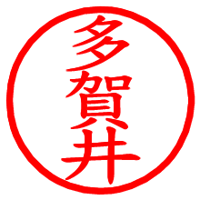 [朱肉の色]を選び、入力窓に“多賀井”と入力して[生成]ボタンを押すと、印影が更新され、リンクから電子印鑑(デジタル印影)がダウンロードできます。 電子印鑑「多賀井」の作り方文字表示が変なときや、文字バランスが悪いときは[字形切替]のチェックボックスでON/OFFを切り替え[生成]しなおしてください。 生成される画像は通常の印影「多賀井.png」と、にじみを表現した少し太めの印影「多賀井B.png」の背面透過PNG形式2種と、鮮明なPDF形式の印影「多賀井.pdf」の計3種類です。 朱肉の微妙な色の違いを7色で表現しました。デフォルト(左端)は、JISが定めた朱肉の色のマンセル値(7.5R 5/14)をRGB値(217,66,54)に変換したものになっています。 「電子透かし」にチェックを入れて[生成]ボタンを押すと、タイムスタンプを電子透かしとして埋め込んだセキュアな電子印鑑が作れます。詳細は別ページの「タイムスタンプと電子透かし」でご覧ください。 多賀井さんの日付印が作れます。「日付スタンプメーカー」は、社内向けの書類に利用されることの多い日付印(データ印)が無料で作れるWebアプリケーションです。中段に日付が入り、上段と下段は、ともに8文字まで文字が入ります。 ![]() 古代文字で落款印が作れます。「落款スタンプメーカー」で作品を引き立たせる落款印が作れます。