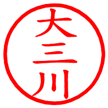 [朱肉の色]を選び、入力窓に“大三川”と入力して[生成]ボタンを押すと、印影が更新され、リンクから電子印鑑(デジタル印影)がダウンロードできます。 電子印鑑「大三川」の作り方文字表示が変なときや、文字バランスが悪いときは[字形切替]のチェックボックスでON/OFFを切り替え[生成]しなおしてください。 生成される画像は通常の印影「大三川.png」と、にじみを表現した少し太めの印影「大三川B.png」の背面透過PNG形式2種と、鮮明なPDF形式の印影「大三川.pdf」の計3種類です。 朱肉の微妙な色の違いを7色で表現しました。デフォルト(左端)は、JISが定めた朱肉の色のマンセル値(7.5R 5/14)をRGB値(217,66,54)に変換したものになっています。 「電子透かし」にチェックを入れて[生成]ボタンを押すと、タイムスタンプを電子透かしとして埋め込んだセキュアな電子印鑑が作れます。詳細は別ページの「タイムスタンプと電子透かし」でご覧ください。 大三川さんの日付印が作れます。「日付スタンプメーカー」は、社内向けの書類に利用されることの多い日付印(データ印)が無料で作れるWebアプリケーションです。中段に日付が入り、上段と下段は、ともに8文字まで文字が入ります。 ![]() 古代文字で落款印が作れます。「落款スタンプメーカー」で作品を引き立たせる落款印が作れます。