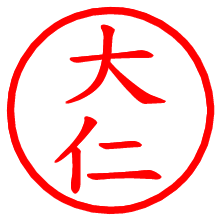[朱肉の色]を選び、入力窓に“大仁”と入力して[生成]ボタンを押すと、印影が更新され、リンクから電子印鑑(デジタル印影)がダウンロードできます。 電子印鑑「大仁」の作り方文字表示が変なときや、文字バランスが悪いときは[字形切替]のチェックボックスでON/OFFを切り替え[生成]しなおしてください。 生成される画像は通常の印影「大仁.png」と、にじみを表現した少し太めの印影「大仁B.png」の背面透過PNG形式2種と、鮮明なPDF形式の印影「大仁.pdf」の計3種類です。 朱肉の微妙な色の違いを7色で表現しました。デフォルト(左端)は、JISが定めた朱肉の色のマンセル値(7.5R 5/14)をRGB値(217,66,54)に変換したものになっています。 「電子透かし」にチェックを入れて[生成]ボタンを押すと、タイムスタンプを電子透かしとして埋め込んだセキュアな電子印鑑が作れます。詳細は別ページの「タイムスタンプと電子透かし」でご覧ください。 大仁さんの日付印が作れます。「日付スタンプメーカー」は、社内向けの書類に利用されることの多い日付印(データ印)が無料で作れるWebアプリケーションです。中段に日付が入り、上段と下段は、ともに8文字まで文字が入ります。 ![]() 古代文字で落款印が作れます。「落款スタンプメーカー」で作品を引き立たせる落款印が作れます。