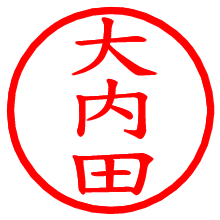 [朱肉の色]を選び、入力窓に“大内田”と入力して[生成]ボタンを押すと、印影が更新され、リンクから電子印鑑(デジタル印影)がダウンロードできます。 電子印鑑「大内田」の作り方文字表示が変なときや、文字バランスが悪いときは[字形切替]のチェックボックスでON/OFFを切り替え[生成]しなおしてください。 生成される画像は通常の印影「大内田.png」と、にじみを表現した少し太めの印影「大内田B.png」の背面透過PNG形式2種と、鮮明なPDF形式の印影「大内田.pdf」の計3種類です。 朱肉の微妙な色の違いを7色で表現しました。デフォルト(左端)は、JISが定めた朱肉の色のマンセル値(7.5R 5/14)をRGB値(217,66,54)に変換したものになっています。 「電子透かし」にチェックを入れて[生成]ボタンを押すと、タイムスタンプを電子透かしとして埋め込んだセキュアな電子印鑑が作れます。詳細は別ページの「タイムスタンプと電子透かし」でご覧ください。 大内田さんの日付印が作れます。「日付スタンプメーカー」は、社内向けの書類に利用されることの多い日付印(データ印)が無料で作れるWebアプリケーションです。中段に日付が入り、上段と下段は、ともに8文字まで文字が入ります。 ![]() 古代文字で落款印が作れます。「落款スタンプメーカー」で作品を引き立たせる落款印が作れます。