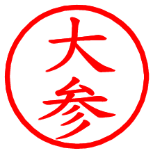 [朱肉の色]を選び、入力窓に“大参”と入力して[生成]ボタンを押すと、印影が更新され、リンクから電子印鑑(デジタル印影)がダウンロードできます。 電子印鑑「大参」の作り方文字表示が変なときや、文字バランスが悪いときは[字形切替]のチェックボックスでON/OFFを切り替え[生成]しなおしてください。 生成される画像は通常の印影「大参.png」と、にじみを表現した少し太めの印影「大参B.png」の背面透過PNG形式2種と、鮮明なPDF形式の印影「大参.pdf」の計3種類です。 朱肉の微妙な色の違いを7色で表現しました。デフォルト(左端)は、JISが定めた朱肉の色のマンセル値(7.5R 5/14)をRGB値(217,66,54)に変換したものになっています。 「電子透かし」にチェックを入れて[生成]ボタンを押すと、タイムスタンプを電子透かしとして埋め込んだセキュアな電子印鑑が作れます。詳細は別ページの「タイムスタンプと電子透かし」でご覧ください。 大参さんの日付印が作れます。「日付スタンプメーカー」は、社内向けの書類に利用されることの多い日付印(データ印)が無料で作れるWebアプリケーションです。中段に日付が入り、上段と下段は、ともに8文字まで文字が入ります。 ![]() 古代文字で落款印が作れます。「落款スタンプメーカー」で作品を引き立たせる落款印が作れます。