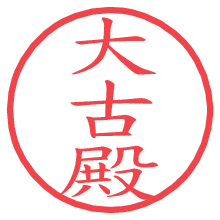 [朱肉の色]を選び、入力窓に“大古殿”と入力して[生成]ボタンを押すと、印影が更新され、リンクから電子印鑑(デジタル印影)がダウンロードできます。 電子印鑑「大古殿」の作り方文字表示が変なときや、文字バランスが悪いときは[字形切替]のチェックボックスでON/OFFを切り替え[生成]しなおしてください。 生成される画像は通常の印影「大古殿.png」と、にじみを表現した少し太めの印影「大古殿B.png」の背面透過PNG形式2種と、鮮明なPDF形式の印影「大古殿.pdf」の計3種類です。 朱肉の微妙な色の違いを7色で表現しました。デフォルト(左端)は、JISが定めた朱肉の色のマンセル値(7.5R 5/14)をRGB値(217,66,54)に変換したものになっています。 「電子透かし」にチェックを入れて[生成]ボタンを押すと、タイムスタンプを電子透かしとして埋め込んだセキュアな電子印鑑が作れます。詳細は別ページの「タイムスタンプと電子透かし」でご覧ください。 大古殿さんの日付印が作れます。「日付スタンプメーカー」は、社内向けの書類に利用されることの多い日付印(データ印)が無料で作れるWebアプリケーションです。中段に日付が入り、上段と下段は、ともに8文字まで文字が入ります。 ![]() 古代文字で落款印が作れます。「落款スタンプメーカー」で作品を引き立たせる落款印が作れます。