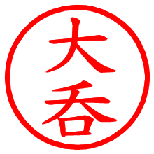 [朱肉の色]を選び、入力窓に“大呑”と入力して[生成]ボタンを押すと、印影が更新され、リンクから電子印鑑(デジタル印影)がダウンロードできます。 電子印鑑「大呑」の作り方文字表示が変なときや、文字バランスが悪いときは[字形切替]のチェックボックスでON/OFFを切り替え[生成]しなおしてください。 生成される画像は通常の印影「大呑.png」と、にじみを表現した少し太めの印影「大呑B.png」の背面透過PNG形式2種と、鮮明なPDF形式の印影「大呑.pdf」の計3種類です。 朱肉の微妙な色の違いを7色で表現しました。デフォルト(左端)は、JISが定めた朱肉の色のマンセル値(7.5R 5/14)をRGB値(217,66,54)に変換したものになっています。 「電子透かし」にチェックを入れて[生成]ボタンを押すと、タイムスタンプを透かしとして埋め込んだセキュアな電子印鑑が作れます。詳細は別ページの「電子透かしとタイムスタンプ」でご覧ください。 大呑さんの日付印が作れます。「日付スタンプメーカー」は、社内向けの書類に利用されることの多い日付印(データ印)が無料で作れるWebアプリケーションです。中段に日付が入り、上段と下段は、ともに8文字まで文字が入ります。 ![]() 古代文字で落款印が作れます。「落款スタンプメーカー」で作品を引き立たせる落款印が作れます。