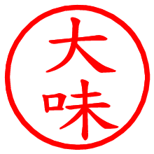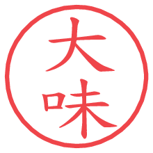 [朱肉の色]を選び、入力窓に“大味”と入力して[生成]ボタンを押すと、印影が更新され、リンクから電子印鑑(デジタル印影)がダウンロードできます。 電子印鑑「大味」の作り方文字表示が変なときや、文字バランスが悪いときは[字形切替]のチェックボックスでON/OFFを切り替え[生成]しなおしてください。 生成される画像は通常の印影「大味.png」と、にじみを表現した少し太めの印影「大味B.png」の背面透過PNG形式2種と、鮮明なPDF形式の印影「大味.pdf」の計3種類です。 朱肉の微妙な色の違いを7色で表現しました。デフォルト(左端)は、JISが定めた朱肉の色のマンセル値(7.5R 5/14)をRGB値(217,66,54)に変換したものになっています。 「電子透かし」にチェックを入れて[生成]ボタンを押すと、タイムスタンプを電子透かしとして埋め込んだセキュアな電子印鑑が作れます。詳細は別ページの「タイムスタンプと電子透かし」でご覧ください。 大味さんの日付印が作れます。「日付スタンプメーカー」は、社内向けの書類に利用されることの多い日付印(データ印)が無料で作れるWebアプリケーションです。中段に日付が入り、上段と下段は、ともに8文字まで文字が入ります。 ![]() 古代文字で落款印が作れます。「落款スタンプメーカー」で作品を引き立たせる落款印が作れます。