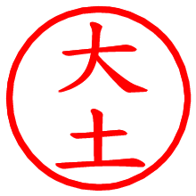 [朱肉の色]を選び、入力窓に“大土”と入力して[生成]ボタンを押すと、印影が更新され、リンクから電子印鑑(デジタル印影)がダウンロードできます。 電子印鑑「大土」の作り方文字表示が変なときや、文字バランスが悪いときは[字形切替]のチェックボックスでON/OFFを切り替え[生成]しなおしてください。 生成される画像は通常の印影「大土.png」と、にじみを表現した少し太めの印影「大土B.png」の背面透過PNG形式2種と、鮮明なPDF形式の印影「大土.pdf」の計3種類です。 朱肉の微妙な色の違いを7色で表現しました。デフォルト(左端)は、JISが定めた朱肉の色のマンセル値(7.5R 5/14)をRGB値(217,66,54)に変換したものになっています。 「電子透かし」にチェックを入れて[生成]ボタンを押すと、タイムスタンプを電子透かしとして埋め込んだセキュアな電子印鑑が作れます。詳細は別ページの「タイムスタンプと電子透かし」でご覧ください。 大土さんの日付印が作れます。「日付スタンプメーカー」は、社内向けの書類に利用されることの多い日付印(データ印)が無料で作れるWebアプリケーションです。中段に日付が入り、上段と下段は、ともに8文字まで文字が入ります。 ![]() 古代文字で落款印が作れます。「落款スタンプメーカー」で作品を引き立たせる落款印が作れます。