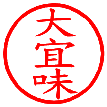 [朱肉の色]を選び、入力窓に“大宜味”と入力して[生成]ボタンを押すと、印影が更新され、リンクから電子印鑑(デジタル印影)がダウンロードできます。 電子印鑑「大宜味」の作り方文字表示が変なときや、文字バランスが悪いときは[字形切替]のチェックボックスでON/OFFを切り替え[生成]しなおしてください。 生成される画像は通常の印影「大宜味.png」と、にじみを表現した少し太めの印影「大宜味B.png」の背面透過PNG形式2種と、鮮明なPDF形式の印影「大宜味.pdf」の計3種類です。 朱肉の微妙な色の違いを7色で表現しました。デフォルト(左端)は、JISが定めた朱肉の色のマンセル値(7.5R 5/14)をRGB値(217,66,54)に変換したものになっています。 「電子透かし」にチェックを入れて[生成]ボタンを押すと、タイムスタンプを電子透かしとして埋め込んだセキュアな電子印鑑が作れます。詳細は別ページの「タイムスタンプと電子透かし」でご覧ください。 大宜味さんの日付印が作れます。「日付スタンプメーカー」は、社内向けの書類に利用されることの多い日付印(データ印)が無料で作れるWebアプリケーションです。中段に日付が入り、上段と下段は、ともに8文字まで文字が入ります。 ![]() 古代文字で落款印が作れます。「落款スタンプメーカー」で作品を引き立たせる落款印が作れます。