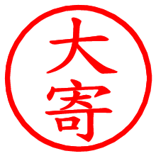 [朱肉の色]を選び、入力窓に“大寄”と入力して[生成]ボタンを押すと、印影が更新され、リンクから電子印鑑(デジタル印影)がダウンロードできます。 電子印鑑「大寄」の作り方文字表示が変なときや、文字バランスが悪いときは[字形切替]のチェックボックスでON/OFFを切り替え[生成]しなおしてください。 生成される画像は通常の印影「大寄.png」と、にじみを表現した少し太めの印影「大寄B.png」の背面透過PNG形式2種と、鮮明なPDF形式の印影「大寄.pdf」の計3種類です。 朱肉の微妙な色の違いを7色で表現しました。デフォルト(左端)は、JISが定めた朱肉の色のマンセル値(7.5R 5/14)をRGB値(217,66,54)に変換したものになっています。 「電子透かし」にチェックを入れて[生成]ボタンを押すと、タイムスタンプを電子透かしとして埋め込んだセキュアな電子印鑑が作れます。詳細は別ページの「タイムスタンプと電子透かし」でご覧ください。 大寄さんの日付印が作れます。「日付スタンプメーカー」は、社内向けの書類に利用されることの多い日付印(データ印)が無料で作れるWebアプリケーションです。中段に日付が入り、上段と下段は、ともに8文字まで文字が入ります。 ![]() 古代文字で落款印が作れます。「落款スタンプメーカー」で作品を引き立たせる落款印が作れます。
