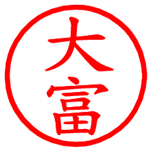 [朱肉の色]を選び、入力窓に“大富”と入力して[生成]ボタンを押すと、印影が更新され、リンクから電子印鑑(デジタル印影)がダウンロードできます。 電子印鑑「大富」の作り方文字表示が変なときや、文字バランスが悪いときは[字形切替]のチェックボックスでON/OFFを切り替え[生成]しなおしてください。 生成される画像は通常の印影「大富.png」と、にじみを表現した少し太めの印影「大富B.png」の背面透過PNG形式2種と、鮮明なPDF形式の印影「大富.pdf」の計3種類です。 朱肉の微妙な色の違いを7色で表現しました。デフォルト(左端)は、JISが定めた朱肉の色のマンセル値(7.5R 5/14)をRGB値(217,66,54)に変換したものになっています。 「電子透かし」にチェックを入れて[生成]ボタンを押すと、タイムスタンプを電子透かしとして埋め込んだセキュアな電子印鑑が作れます。詳細は別ページの「タイムスタンプと電子透かし」でご覧ください。 大富さんの日付印が作れます。「日付スタンプメーカー」は、社内向けの書類に利用されることの多い日付印(データ印)が無料で作れるWebアプリケーションです。中段に日付が入り、上段と下段は、ともに8文字まで文字が入ります。 ![]() 古代文字で落款印が作れます。「落款スタンプメーカー」で作品を引き立たせる落款印が作れます。