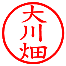 [朱肉の色]を選び、入力窓に“大川畑”と入力して[生成]ボタンを押すと、印影が更新され、リンクから電子印鑑(デジタル印影)がダウンロードできます。 電子印鑑「大川畑」の作り方文字表示が変なときや、文字バランスが悪いときは[字形切替]のチェックボックスでON/OFFを切り替え[生成]しなおしてください。 生成される画像は通常の印影「大川畑.png」と、にじみを表現した少し太めの印影「大川畑B.png」の背面透過PNG形式2種と、鮮明なPDF形式の印影「大川畑.pdf」の計3種類です。 朱肉の微妙な色の違いを7色で表現しました。デフォルト(左端)は、JISが定めた朱肉の色のマンセル値(7.5R 5/14)をRGB値(217,66,54)に変換したものになっています。 「電子透かし」にチェックを入れて[生成]ボタンを押すと、タイムスタンプを透かしとして埋め込んだセキュアな電子印鑑が作れます。詳細は別ページの「電子透かしとタイムスタンプ」でご覧ください。 大川畑さんの日付印が作れます。「日付スタンプメーカー」は、社内向けの書類に利用されることの多い日付印(データ印)が無料で作れるWebアプリケーションです。中段に日付が入り、上段と下段は、ともに8文字まで文字が入ります。 ![]() 古代文字で落款印が作れます。「落款スタンプメーカー」で作品を引き立たせる落款印が作れます。
