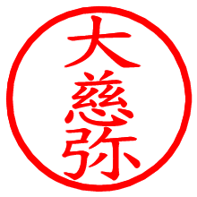 [朱肉の色]を選び、入力窓に“大慈弥”と入力して[生成]ボタンを押すと、印影が更新され、リンクから電子印鑑(デジタル印影)がダウンロードできます。 電子印鑑「大慈弥」の作り方文字表示が変なときや、文字バランスが悪いときは[字形切替]のチェックボックスでON/OFFを切り替え[生成]しなおしてください。 生成される画像は通常の印影「大慈弥.png」と、にじみを表現した少し太めの印影「大慈弥B.png」の背面透過PNG形式2種と、鮮明なPDF形式の印影「大慈弥.pdf」の計3種類です。 朱肉の微妙な色の違いを7色で表現しました。デフォルト(左端)は、JISが定めた朱肉の色のマンセル値(7.5R 5/14)をRGB値(217,66,54)に変換したものになっています。 「電子透かし」にチェックを入れて[生成]ボタンを押すと、タイムスタンプを電子透かしとして埋め込んだセキュアな電子印鑑が作れます。詳細は別ページの「タイムスタンプと電子透かし」でご覧ください。 大慈弥さんの日付印が作れます。「日付スタンプメーカー」は、社内向けの書類に利用されることの多い日付印(データ印)が無料で作れるWebアプリケーションです。中段に日付が入り、上段と下段は、ともに8文字まで文字が入ります。 ![]() 古代文字で落款印が作れます。「落款スタンプメーカー」で作品を引き立たせる落款印が作れます。