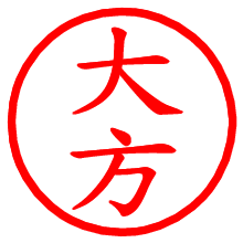 [朱肉の色]を選び、入力窓に“大方”と入力して[生成]ボタンを押すと、印影が更新され、リンクから電子印鑑(デジタル印影)がダウンロードできます。 電子印鑑「大方」の作り方文字表示が変なときや、文字バランスが悪いときは[字形切替]のチェックボックスでON/OFFを切り替え[生成]しなおしてください。 生成される画像は通常の印影「大方.png」と、にじみを表現した少し太めの印影「大方B.png」の背面透過PNG形式2種と、鮮明なPDF形式の印影「大方.pdf」の計3種類です。 朱肉の微妙な色の違いを7色で表現しました。デフォルト(左端)は、JISが定めた朱肉の色のマンセル値(7.5R 5/14)をRGB値(217,66,54)に変換したものになっています。 「電子透かし」にチェックを入れて[生成]ボタンを押すと、タイムスタンプを電子透かしとして埋め込んだセキュアな電子印鑑が作れます。詳細は別ページの「タイムスタンプと電子透かし」でご覧ください。 大方さんの日付印が作れます。「日付スタンプメーカー」は、社内向けの書類に利用されることの多い日付印(データ印)が無料で作れるWebアプリケーションです。中段に日付が入り、上段と下段は、ともに8文字まで文字が入ります。 ![]() 古代文字で落款印が作れます。「落款スタンプメーカー」で作品を引き立たせる落款印が作れます。