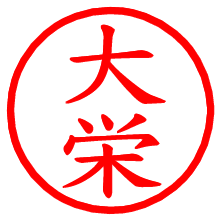 [朱肉の色]を選び、入力窓に“大栄”と入力して[生成]ボタンを押すと、印影が更新され、リンクから電子印鑑(デジタル印影)がダウンロードできます。 電子印鑑「大栄」の作り方文字表示が変なときや、文字バランスが悪いときは[字形切替]のチェックボックスでON/OFFを切り替え[生成]しなおしてください。 生成される画像は通常の印影「大栄.png」と、にじみを表現した少し太めの印影「大栄B.png」の背面透過PNG形式2種と、鮮明なPDF形式の印影「大栄.pdf」の計3種類です。 朱肉の微妙な色の違いを7色で表現しました。デフォルト(左端)は、JISが定めた朱肉の色のマンセル値(7.5R 5/14)をRGB値(217,66,54)に変換したものになっています。 「電子透かし」にチェックを入れて[生成]ボタンを押すと、タイムスタンプを電子透かしとして埋め込んだセキュアな電子印鑑が作れます。詳細は別ページの「タイムスタンプと電子透かし」でご覧ください。 大栄さんの日付印が作れます。「日付スタンプメーカー」は、社内向けの書類に利用されることの多い日付印(データ印)が無料で作れるWebアプリケーションです。中段に日付が入り、上段と下段は、ともに8文字まで文字が入ります。 ![]() 古代文字で落款印が作れます。「落款スタンプメーカー」で作品を引き立たせる落款印が作れます。