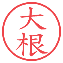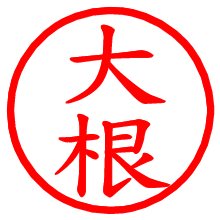 [朱肉の色]を選び、入力窓に“大根”と入力して[生成]ボタンを押すと、印影が更新され、リンクから電子印鑑(デジタル印影)がダウンロードできます。 電子印鑑「大根」の作り方文字表示が変なときや、文字バランスが悪いときは[字形切替]のチェックボックスでON/OFFを切り替え[生成]しなおしてください。 生成される画像は通常の印影「大根.png」と、にじみを表現した少し太めの印影「大根B.png」の背面透過PNG形式2種と、鮮明なPDF形式の印影「大根.pdf」の計3種類です。 朱肉の微妙な色の違いを7色で表現しました。デフォルト(左端)は、JISが定めた朱肉の色のマンセル値(7.5R 5/14)をRGB値(217,66,54)に変換したものになっています。 「電子透かし」にチェックを入れて[生成]ボタンを押すと、タイムスタンプを電子透かしとして埋め込んだセキュアな電子印鑑が作れます。詳細は別ページの「タイムスタンプと電子透かし」でご覧ください。 大根さんの日付印が作れます。「日付スタンプメーカー」は、社内向けの書類に利用されることの多い日付印(データ印)が無料で作れるWebアプリケーションです。中段に日付が入り、上段と下段は、ともに8文字まで文字が入ります。 ![]() 古代文字で落款印が作れます。「落款スタンプメーカー」で作品を引き立たせる落款印が作れます。