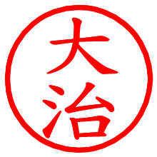 [朱肉の色]を選び、入力窓に“大治”と入力して[生成]ボタンを押すと、印影が更新され、リンクから電子印鑑(デジタル印影)がダウンロードできます。 電子印鑑「大治」の作り方文字表示が変なときや、文字バランスが悪いときは[字形切替]のチェックボックスでON/OFFを切り替え[生成]しなおしてください。 生成される画像は通常の印影「大治.png」と、にじみを表現した少し太めの印影「大治B.png」の背面透過PNG形式2種と、鮮明なPDF形式の印影「大治.pdf」の計3種類です。 朱肉の微妙な色の違いを7色で表現しました。デフォルト(左端)は、JISが定めた朱肉の色のマンセル値(7.5R 5/14)をRGB値(217,66,54)に変換したものになっています。 「電子透かし」にチェックを入れて[生成]ボタンを押すと、タイムスタンプを電子透かしとして埋め込んだセキュアな電子印鑑が作れます。詳細は別ページの「タイムスタンプと電子透かし」でご覧ください。 大治さんの日付印が作れます。「日付スタンプメーカー」は、社内向けの書類に利用されることの多い日付印(データ印)が無料で作れるWebアプリケーションです。中段に日付が入り、上段と下段は、ともに8文字まで文字が入ります。 ![]() 古代文字で落款印が作れます。「落款スタンプメーカー」で作品を引き立たせる落款印が作れます。