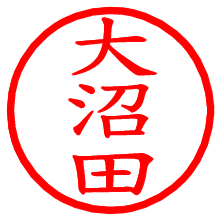 [朱肉の色]を選び、入力窓に“大沼田”と入力して[生成]ボタンを押すと、印影が更新され、リンクから電子印鑑(デジタル印影)がダウンロードできます。 電子印鑑「大沼田」の作り方文字表示が変なときや、文字バランスが悪いときは[字形切替]のチェックボックスでON/OFFを切り替え[生成]しなおしてください。 生成される画像は通常の印影「大沼田.png」と、にじみを表現した少し太めの印影「大沼田B.png」の背面透過PNG形式2種と、鮮明なPDF形式の印影「大沼田.pdf」の計3種類です。 朱肉の微妙な色の違いを7色で表現しました。デフォルト(左端)は、JISが定めた朱肉の色のマンセル値(7.5R 5/14)をRGB値(217,66,54)に変換したものになっています。 「電子透かし」にチェックを入れて[生成]ボタンを押すと、タイムスタンプを電子透かしとして埋め込んだセキュアな電子印鑑が作れます。詳細は別ページの「タイムスタンプと電子透かし」でご覧ください。 大沼田さんの日付印が作れます。「日付スタンプメーカー」は、社内向けの書類に利用されることの多い日付印(データ印)が無料で作れるWebアプリケーションです。中段に日付が入り、上段と下段は、ともに8文字まで文字が入ります。 ![]() 古代文字で落款印が作れます。「落款スタンプメーカー」で作品を引き立たせる落款印が作れます。