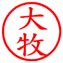[朱肉の色]を選び、入力窓に“大牧”と入力して[生成]ボタンを押すと、印影が更新され、リンクから電子印鑑(デジタル印影)がダウンロードできます。 電子印鑑「大牧」の作り方文字表示が変なときや、文字バランスが悪いときは[字形切替]のチェックボックスでON/OFFを切り替え[生成]しなおしてください。 生成される画像は通常の印影「大牧.png」と、にじみを表現した少し太めの印影「大牧B.png」の背面透過PNG形式2種と、鮮明なPDF形式の印影「大牧.pdf」の計3種類です。 朱肉の微妙な色の違いを7色で表現しました。デフォルト(左端)は、JISが定めた朱肉の色のマンセル値(7.5R 5/14)をRGB値(217,66,54)に変換したものになっています。 「電子透かし」にチェックを入れて[生成]ボタンを押すと、タイムスタンプを電子透かしとして埋め込んだセキュアな電子印鑑が作れます。詳細は別ページの「タイムスタンプと電子透かし」でご覧ください。 大牧さんの日付印が作れます。「日付スタンプメーカー」は、社内向けの書類に利用されることの多い日付印(データ印)が無料で作れるWebアプリケーションです。中段に日付が入り、上段と下段は、ともに8文字まで文字が入ります。 ![]() 古代文字で落款印が作れます。「落款スタンプメーカー」で作品を引き立たせる落款印が作れます。